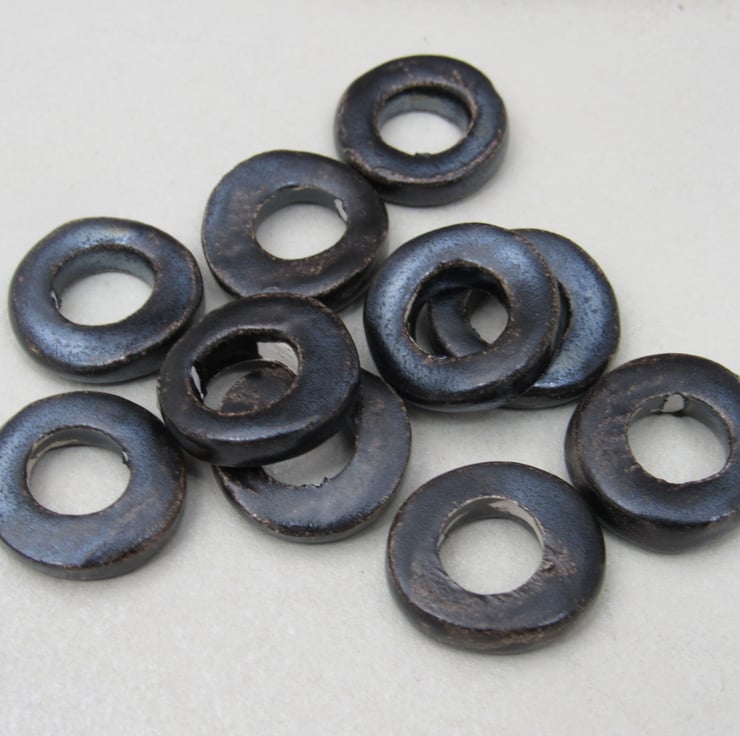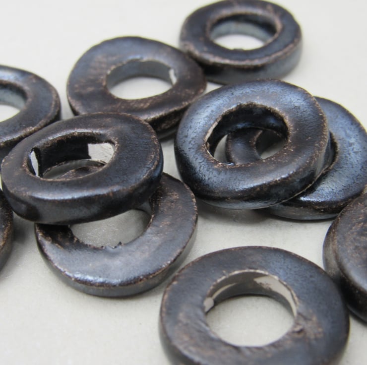 They are approx 1.8 cms (0.7") diameter, with a 9mm (0.3") hole but as they are handmade, they are not identical and not perfectly round.