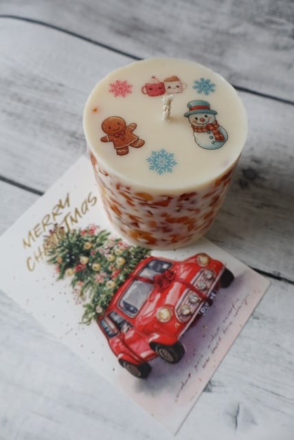 This artisanal candle captures the cozy essence of the cold seasons, making it a perfect accent for your autumn and winter décor.