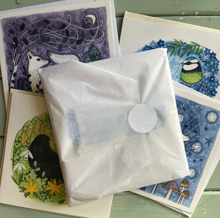 Six card gift set comprises six cards of your choosing. They will be wrapped in tissue paper and then gift wrapped in a fancy pochette envelope with adornments including gift tag.