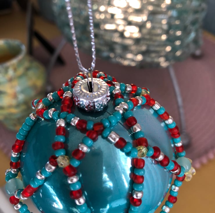 If you’ve always wanted to have a go at beading but don’t know where to start this simple kit is just what you need! Ideal for beginners this simple starter kit has full written instructions for each stage of the make. step by step photos showing handy details, tips and hints to help you enjoy making your very own Christmas bauble cover.