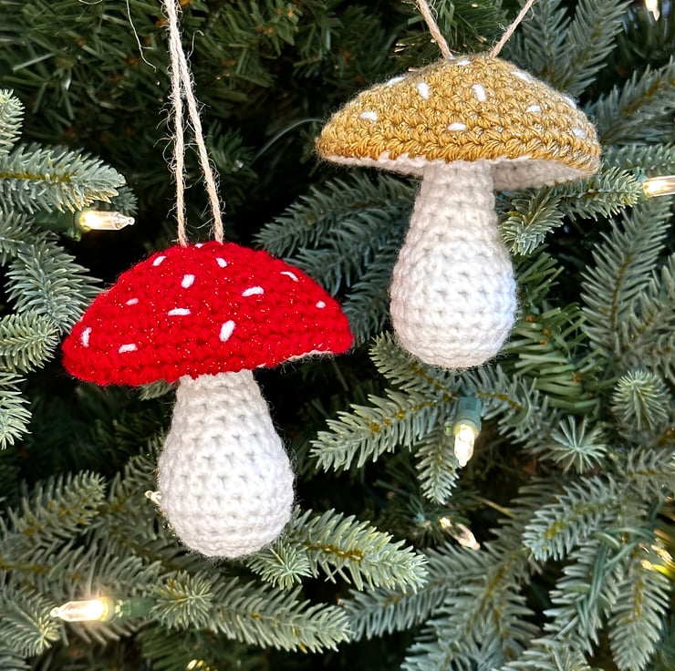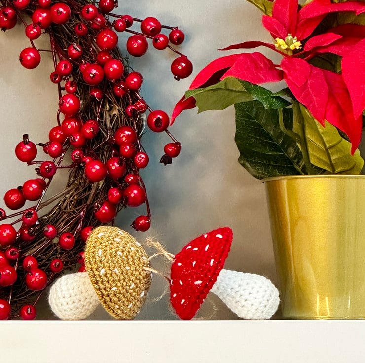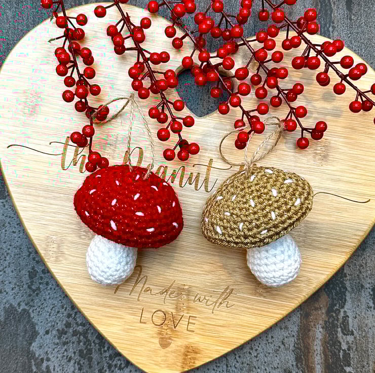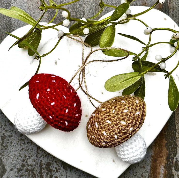 In rich Christmas colours of glittery red and glittery gold yarn, these are sure to add a magical and mystical feel to your tree this year and for many years to come!