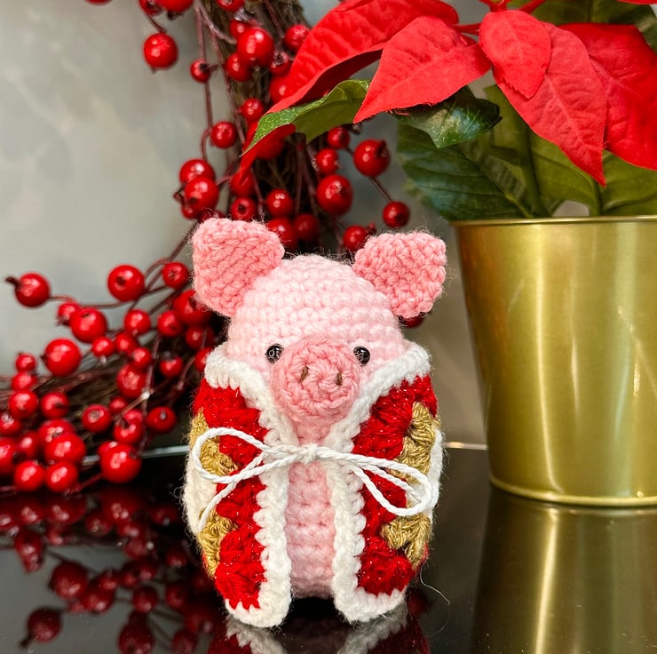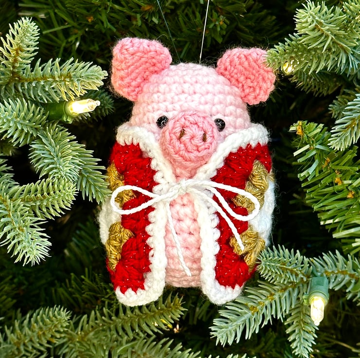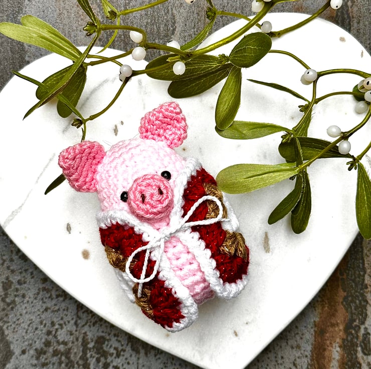Either as a showstopper bauble, glittery bag charm, or a fun stocking filler, this handsome hog is a cute festive friend.
