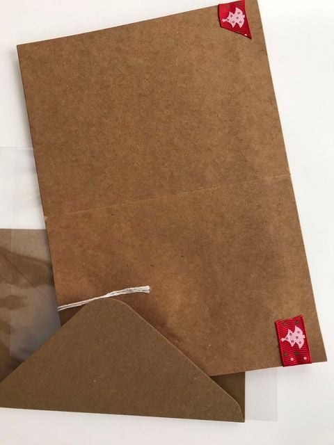 Includes matching brown envelope and a craft cello bag 15x15 cm. Own design.