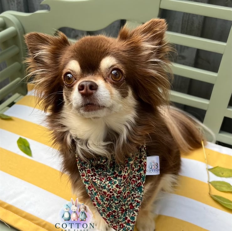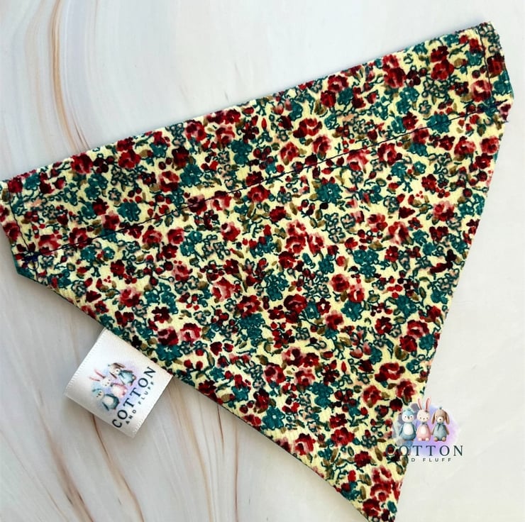 Such a pretty bandana with an autumn feel. At Cotton and Fluff we are committed to love our pets back by making bandanas safe, sustainable and unique.