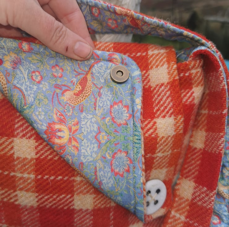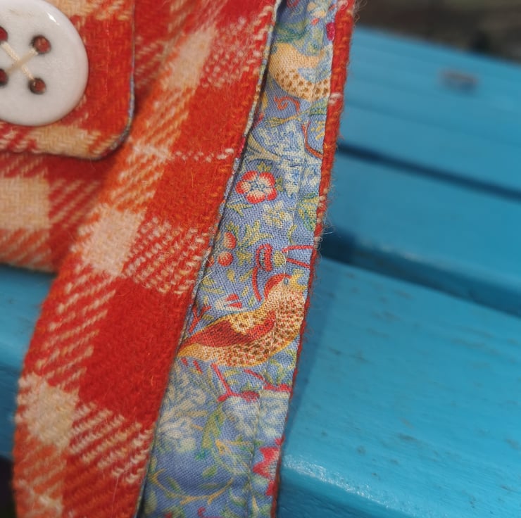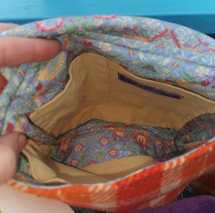 I have become quite obsessed with William Morris designs and this bag has a lovely blue and orange strawberry thief lining.