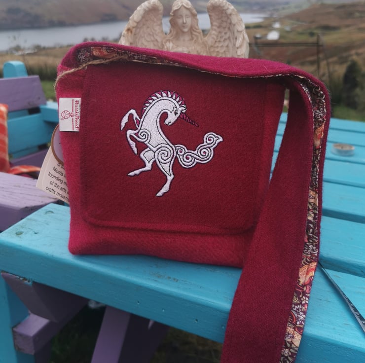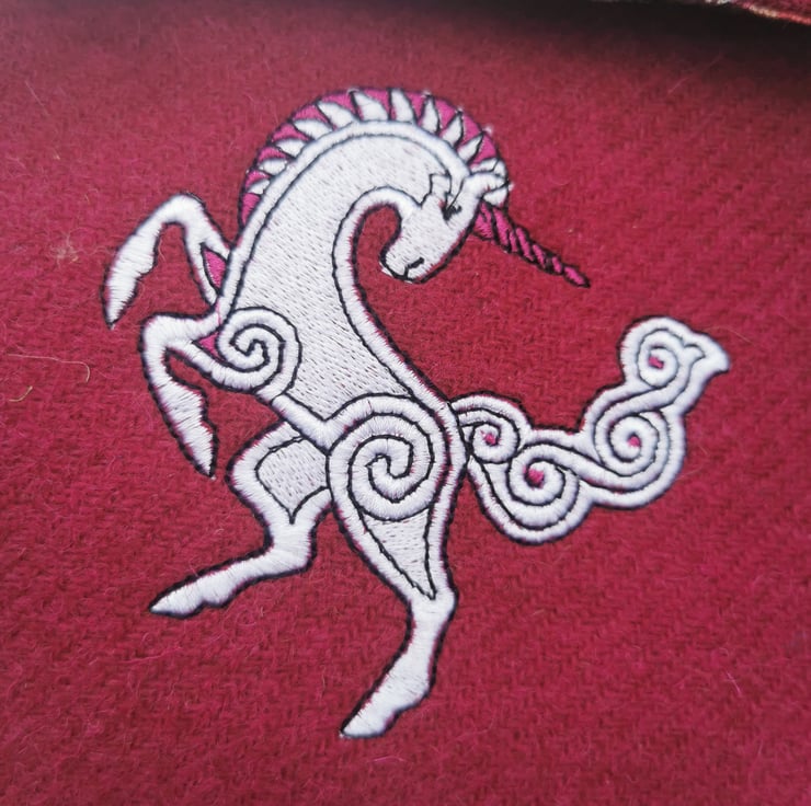 It has this lovely white unicorn embroidery design which I have the exclusive copyright to this design from Marj Tait from highland celtic art