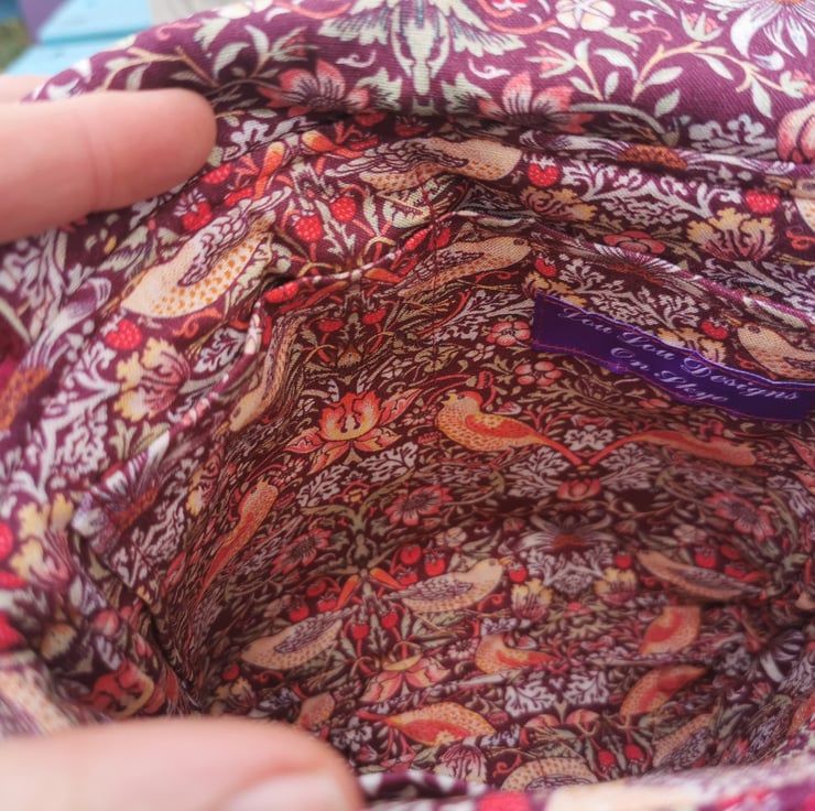 I have become quite obsessed with William Morris designs and this bag has a lovely raspberry strawberry thief lining.