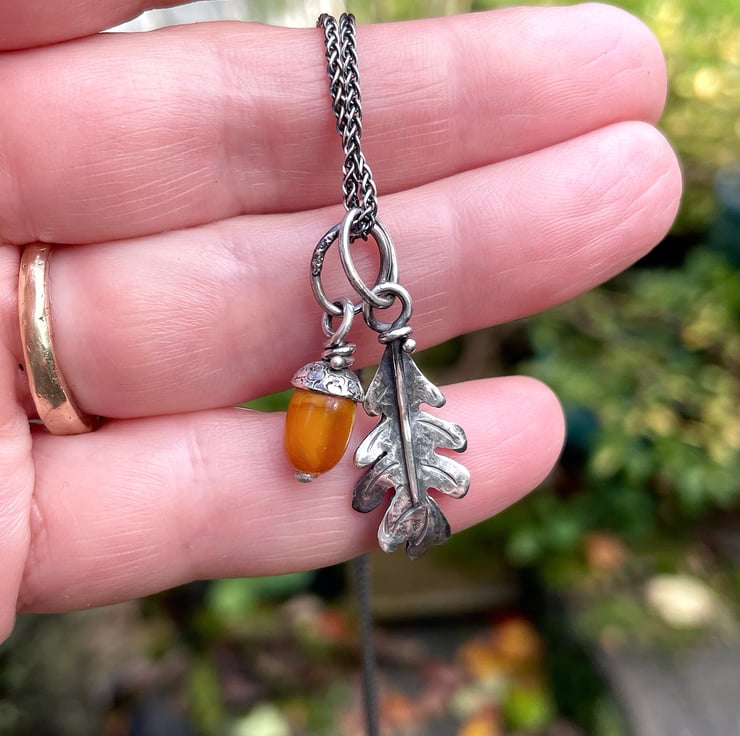 The little acorn pendant has been made using an antique amber bead, I have made the cap from silver that I have textured .