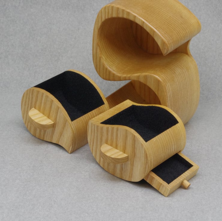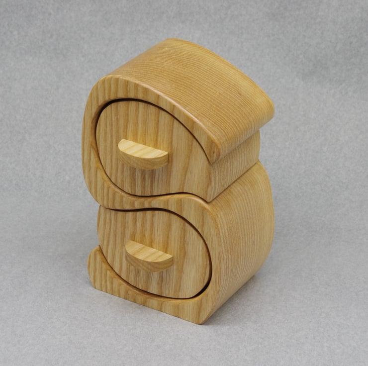 An impressive two drawer wooden trinket, jewel box, with a secret drawer.