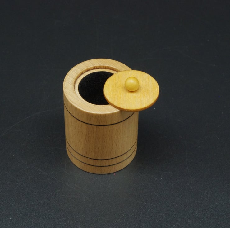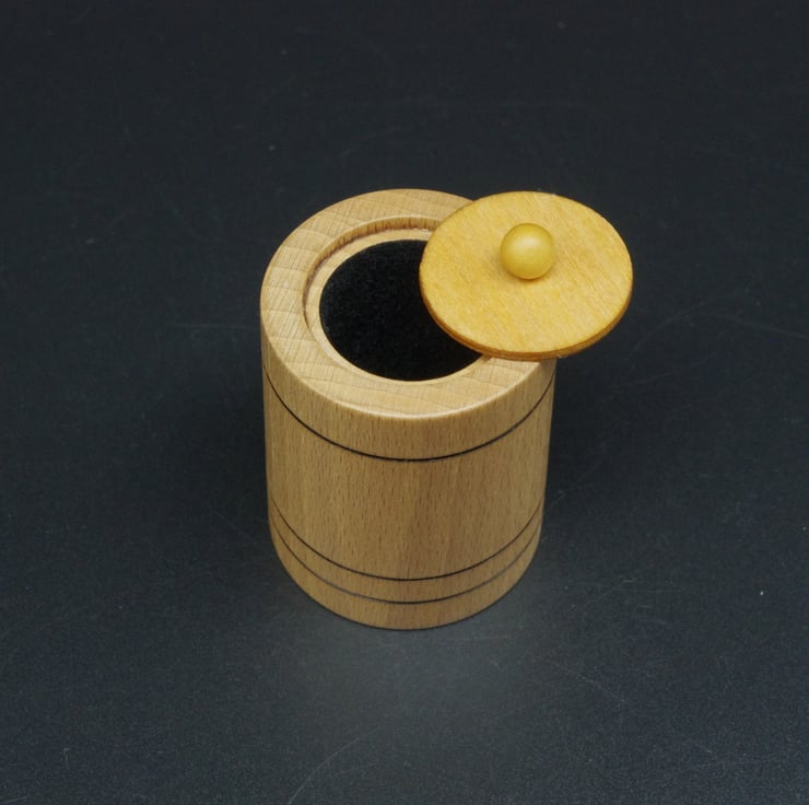 This delightful ring, trinket box with burn line decoration, is made from a piece of Scottish Beech.