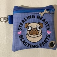 Embroidered bloody knife earrings.