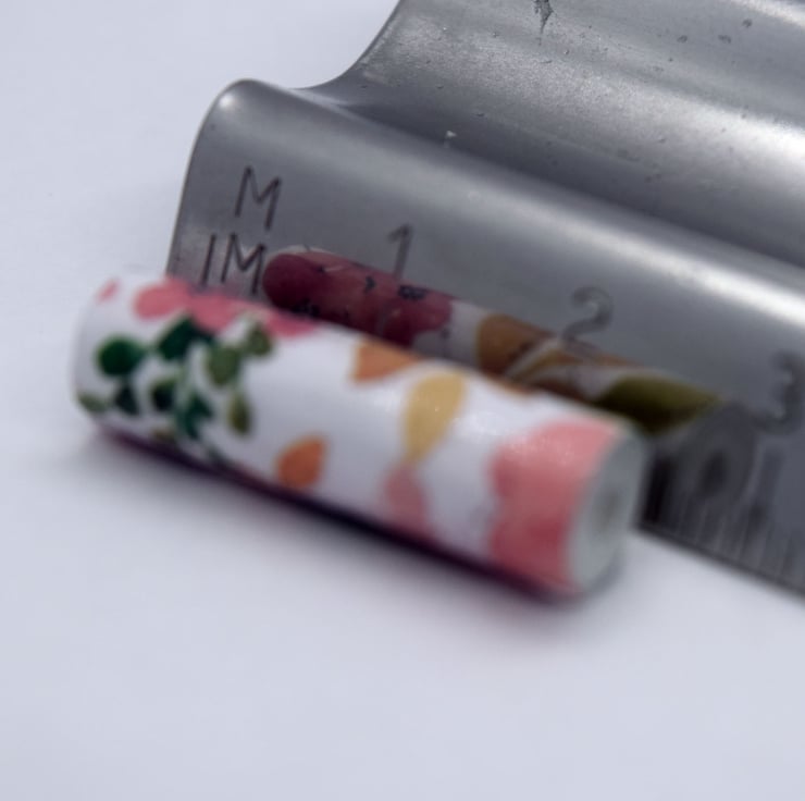 They measure approx 1 inch long and 8 mm wide with a 2.5 mm hole.