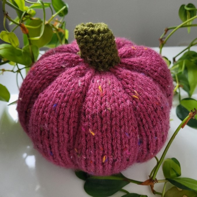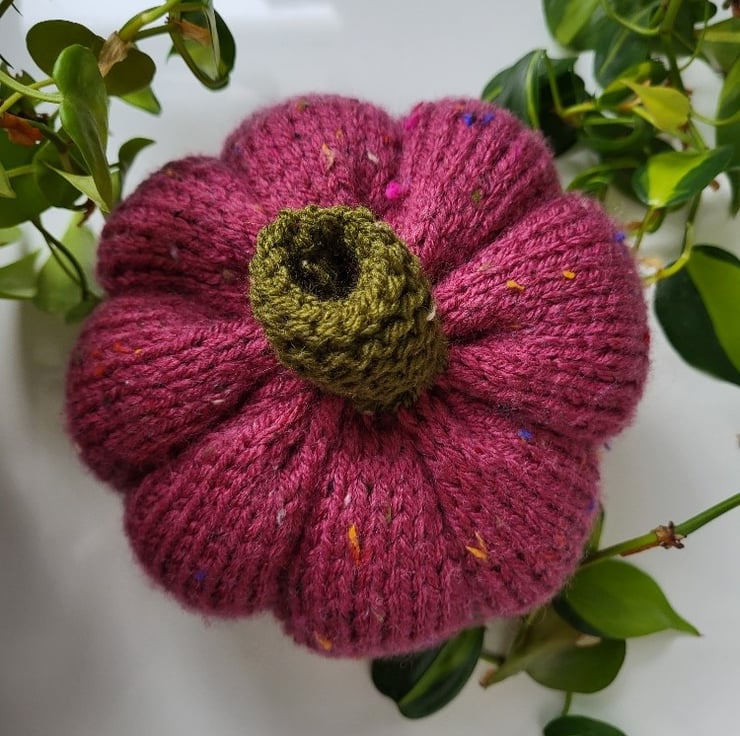 This gorgeous hand knitted plum "rosewood" coloured pumpkin is the perfect addition to your home, whether for Halloween, a gift or just for fun!