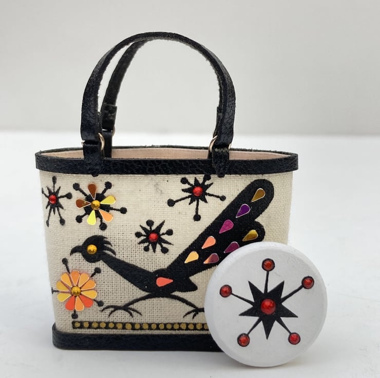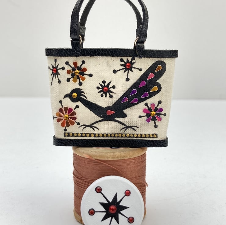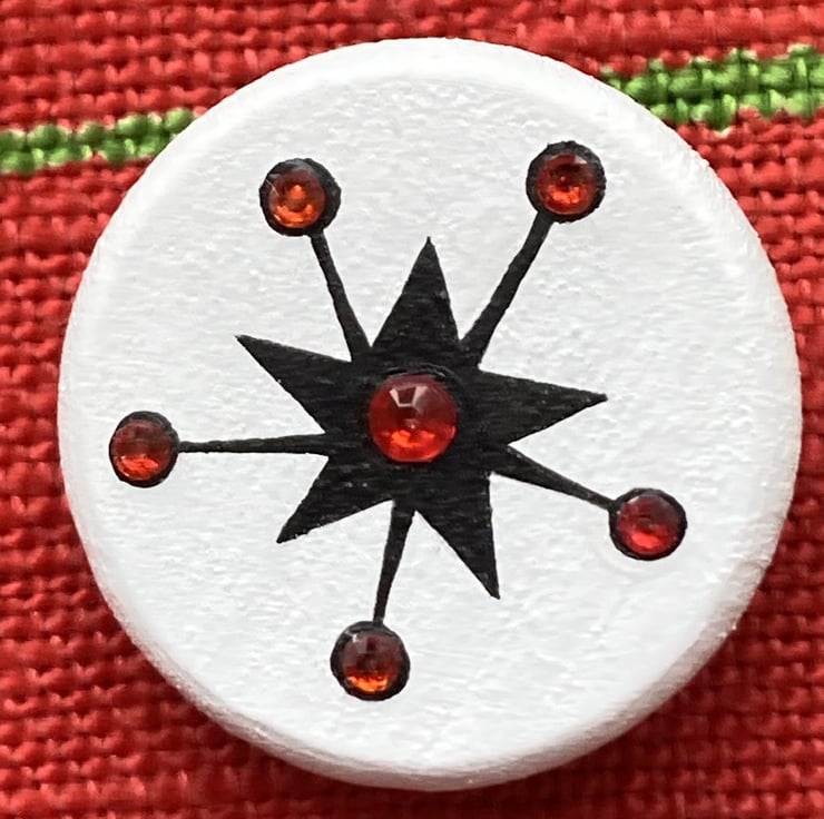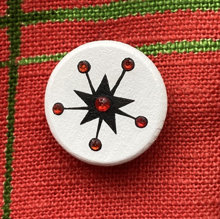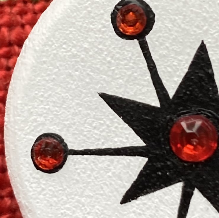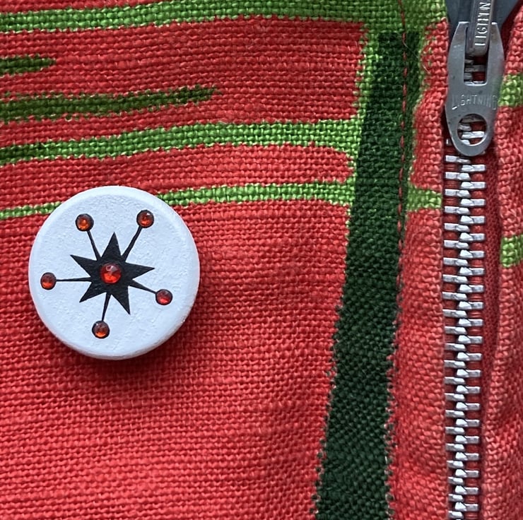 I’ve taken one of the atomic star motifs from my miniature Enid Collins of Texas bags and turned it into a piece of wearable art.