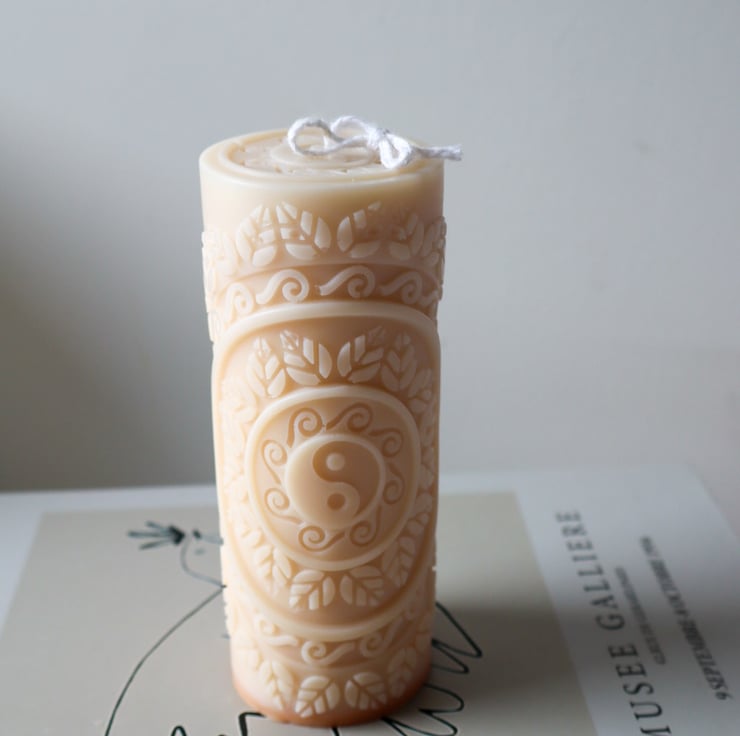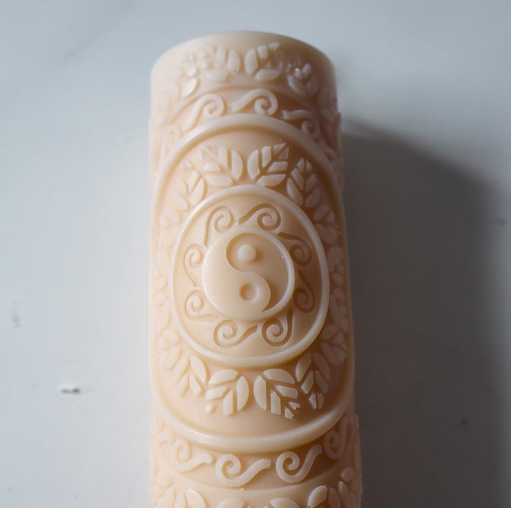 Yin Yang Therapy Scented Pillar Candle crafted from olive wax