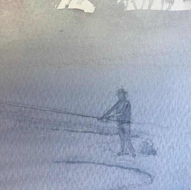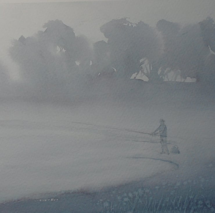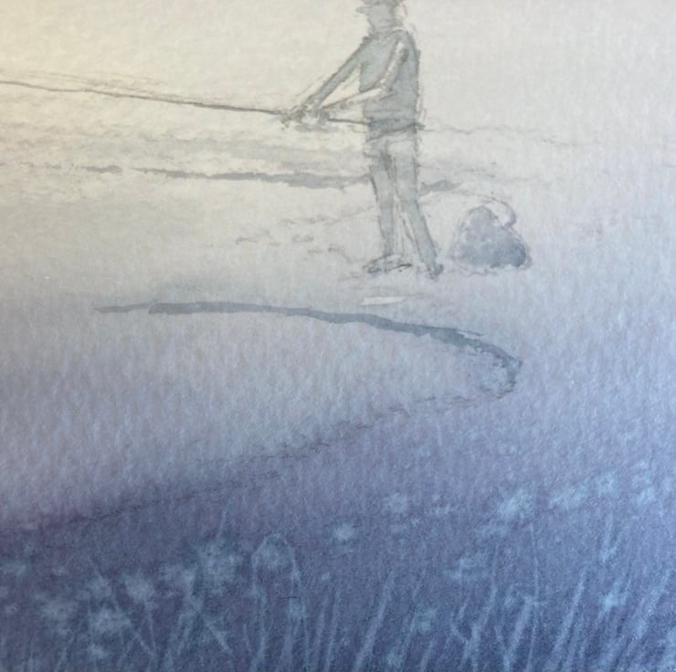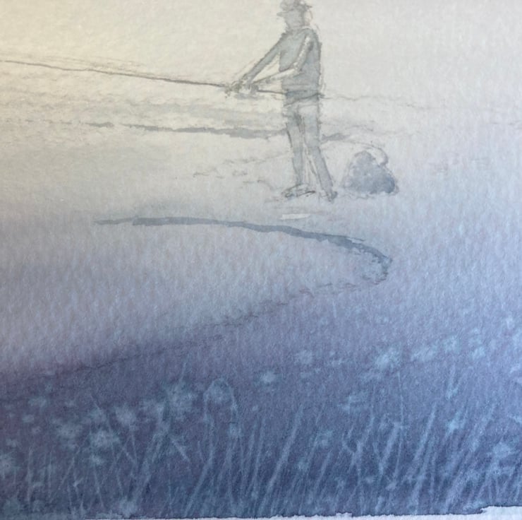 Drummonby pond fisherman (Pure ORIGINAL WATERCOLOUR) A4 size