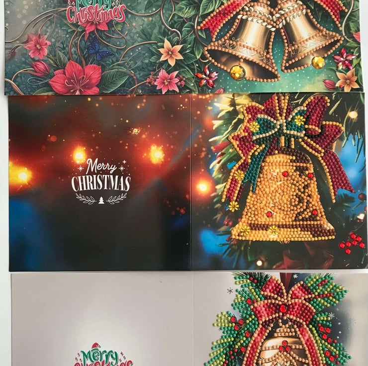 “Gems” were manually placed one by one to create this amazing Christmas cards-Bells Decoration . Worked for up to an hour on each card, 7-14 colours.