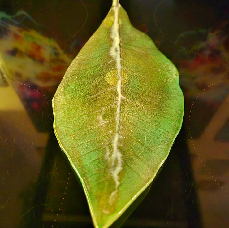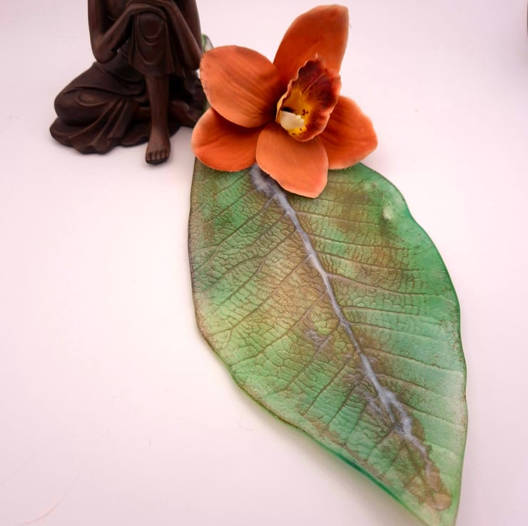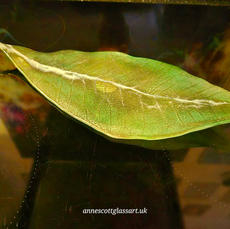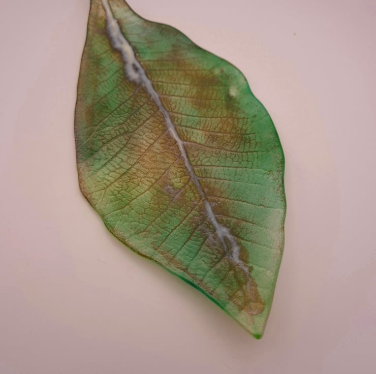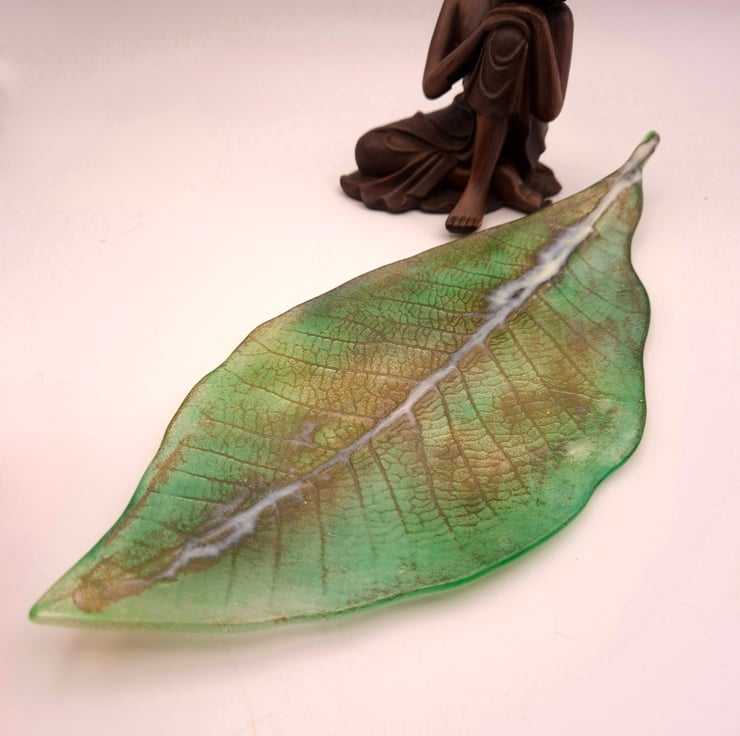Unique Handmade Fused Glass Cloud Forest Magnolia Leaf Cast Summer Ends