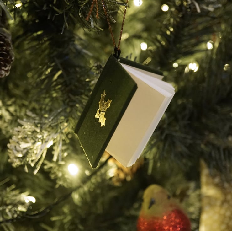 Handmade from scratch in Bath, England, this item really is a tiny book. Each ornament contains pages to use as you please...Jot down your best Christmas jokes, memories, or favourite recipes to bring back next year!