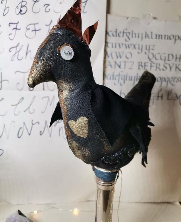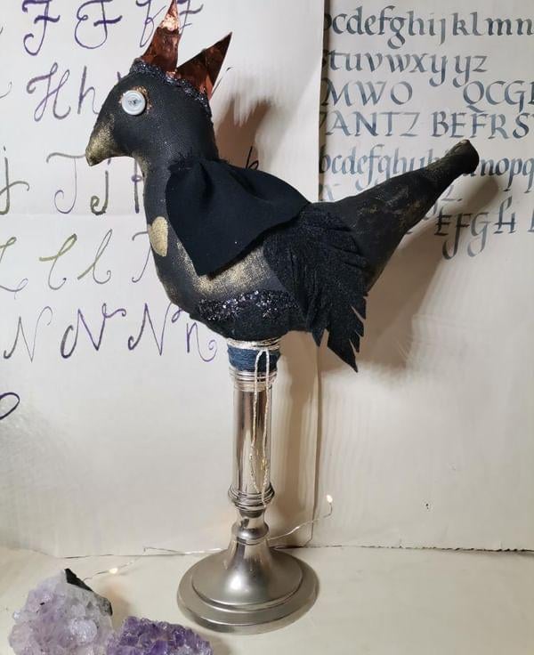 Made using vintage textiles and then hand painted, glittered and dyed.