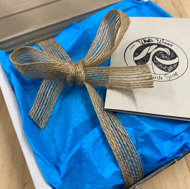 Each gift is tied with a ribbon inside the box (ribbon may vary from that shown, but will always be plastic free), supplied with a gift card and envelope. I can write in the card for you, or it can be left blank for you to personalise! The box will be wrapped in Kraft paper for postage, so that the box will arrive in giftable condition!