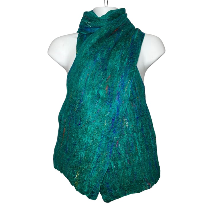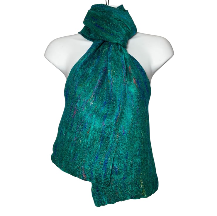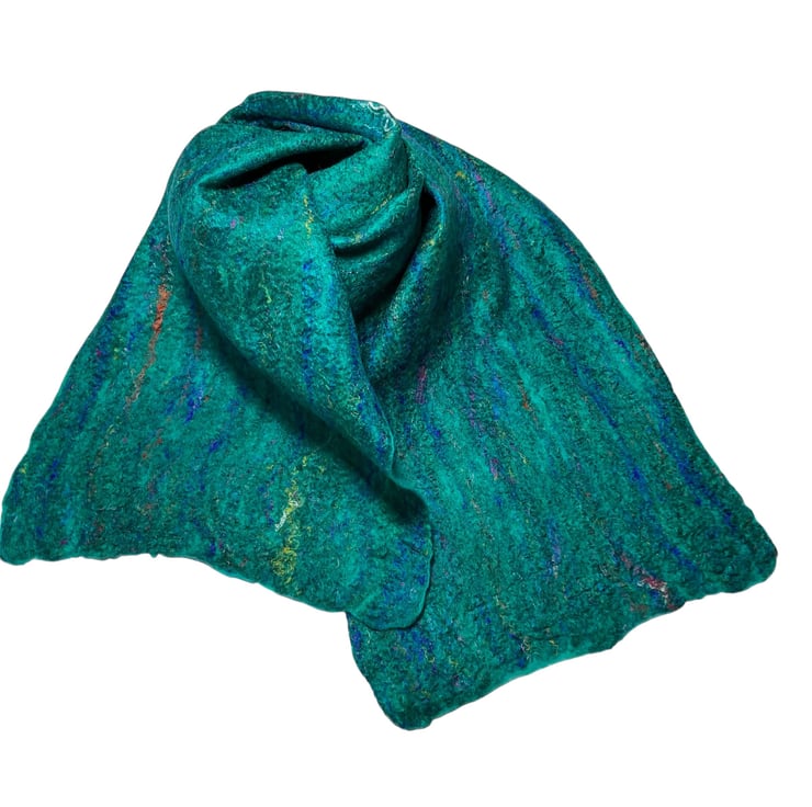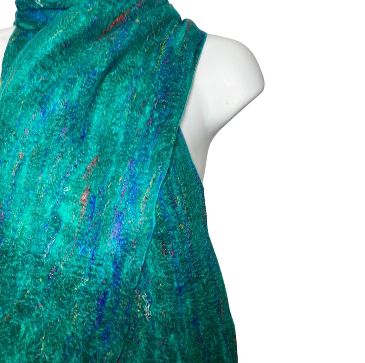 The scarf will be shipped wrapped in tissue paper with a card explaining the felting process and washing instructions.