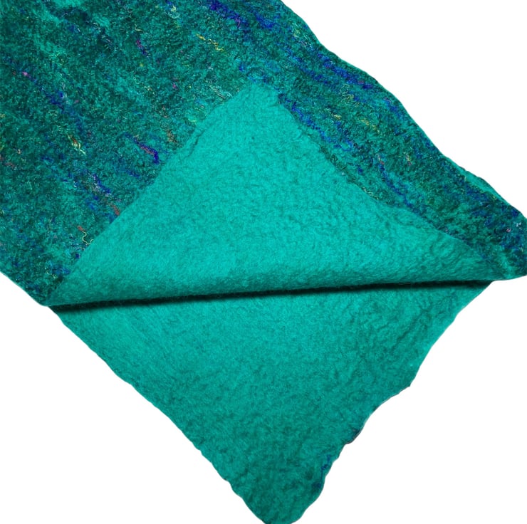 The silk fibres have been added to one side of the scarf only, the reverse has been left plain. .