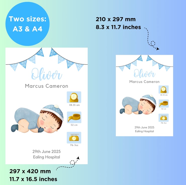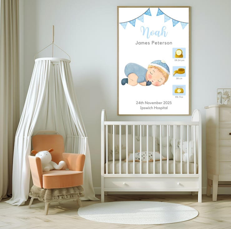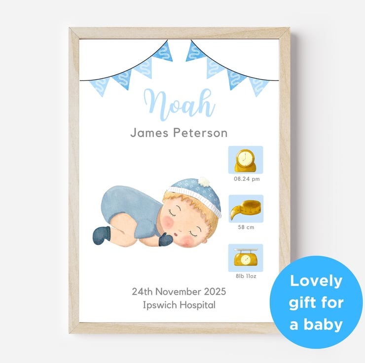 Looking for unique gift for a loved one's new baby boy or a special keepsake to commemorate the birth of your little one? This beautiful print will be treasured for years to come, evoking many happy memories of this most joyous of special occasions.