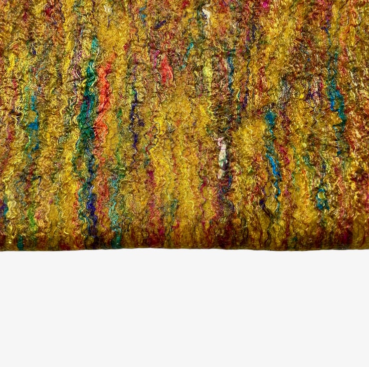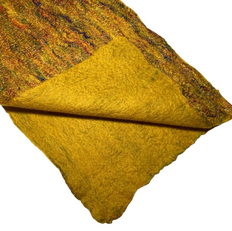 Please note, the silk fibres have been added to one side of the scarf only, the reverse has been left plain. .