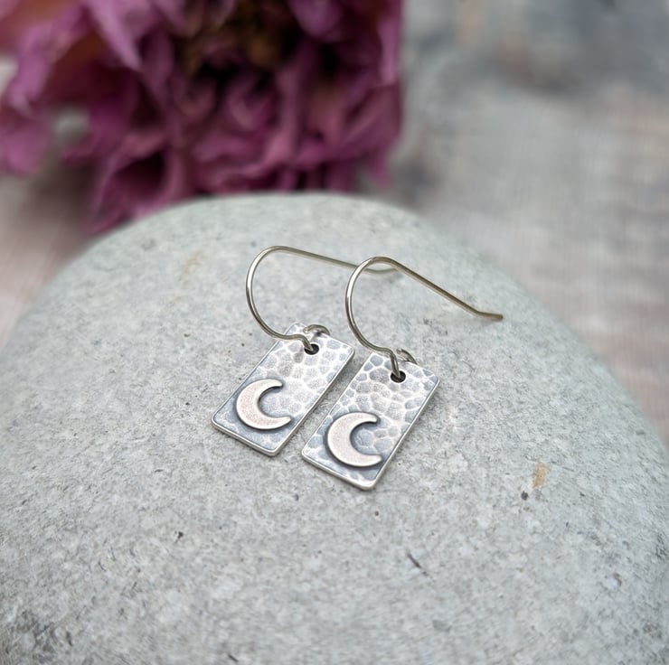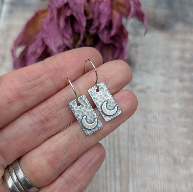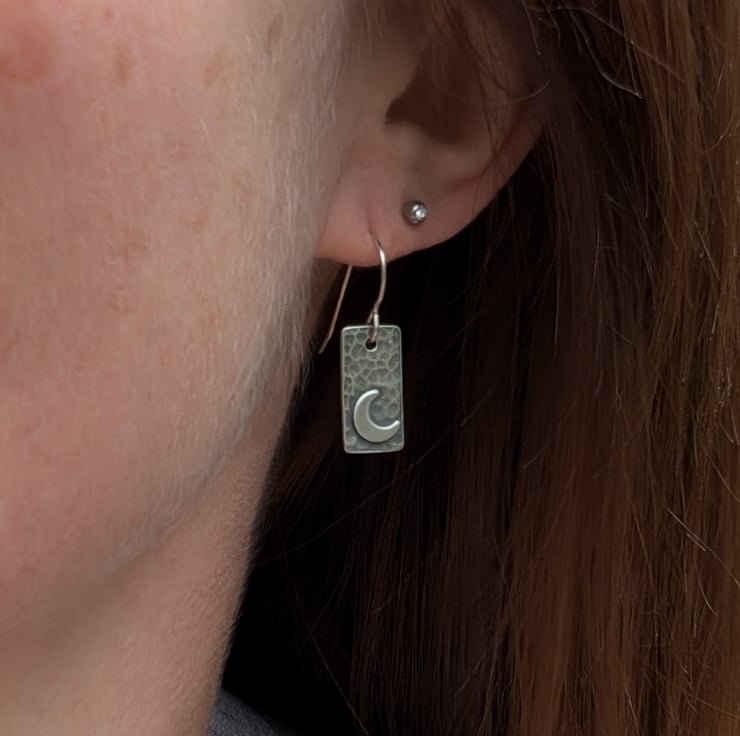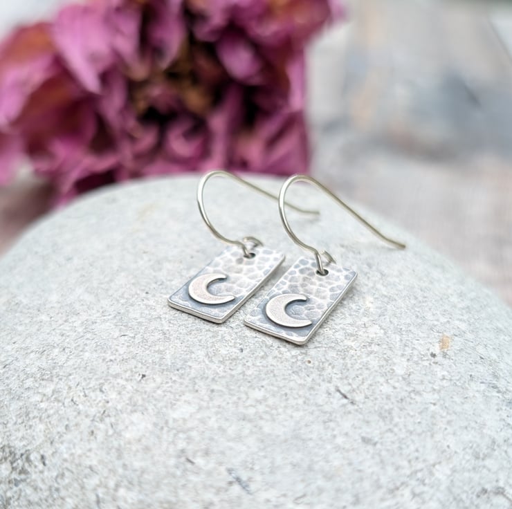 Recycled Sterling Silver Hammered Rectangle Earrings with Moons