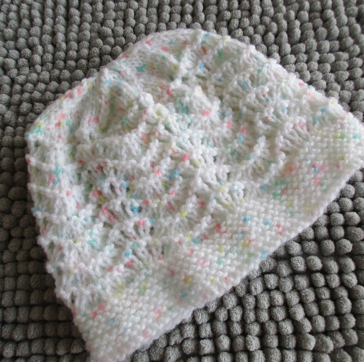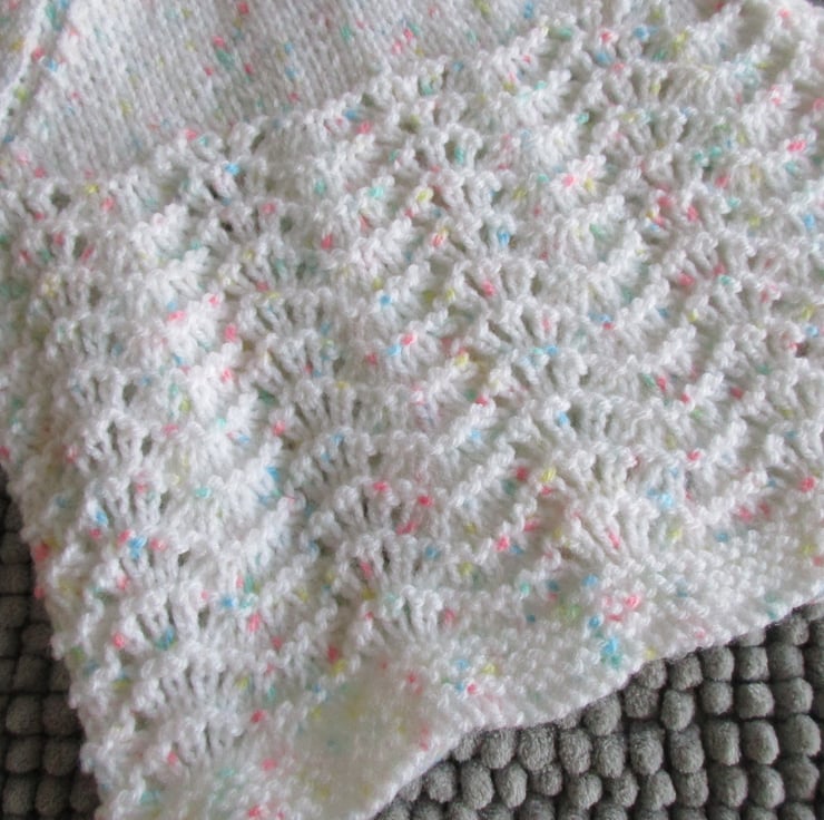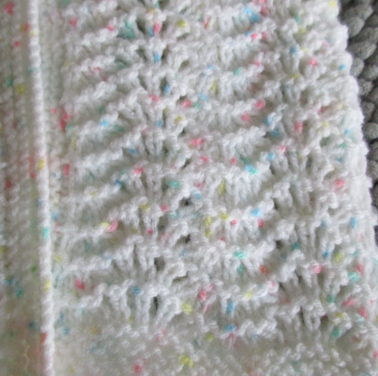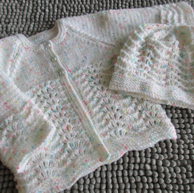 Cardigan / Matinee Coat with Feather and Fan Skirt Stocking Stitch Body and