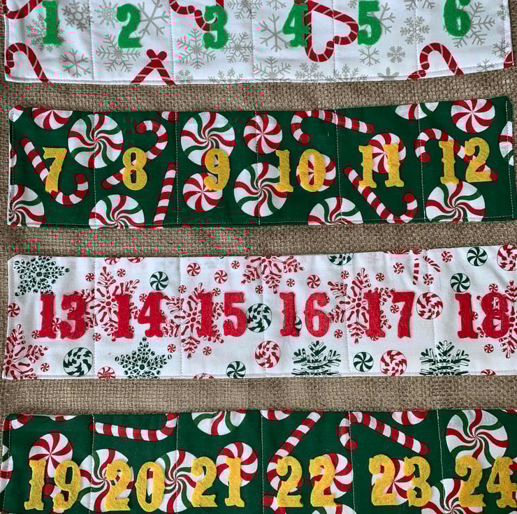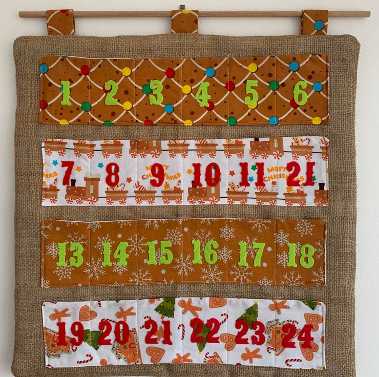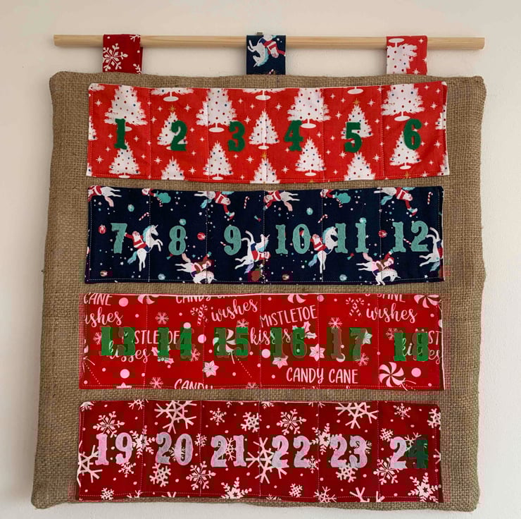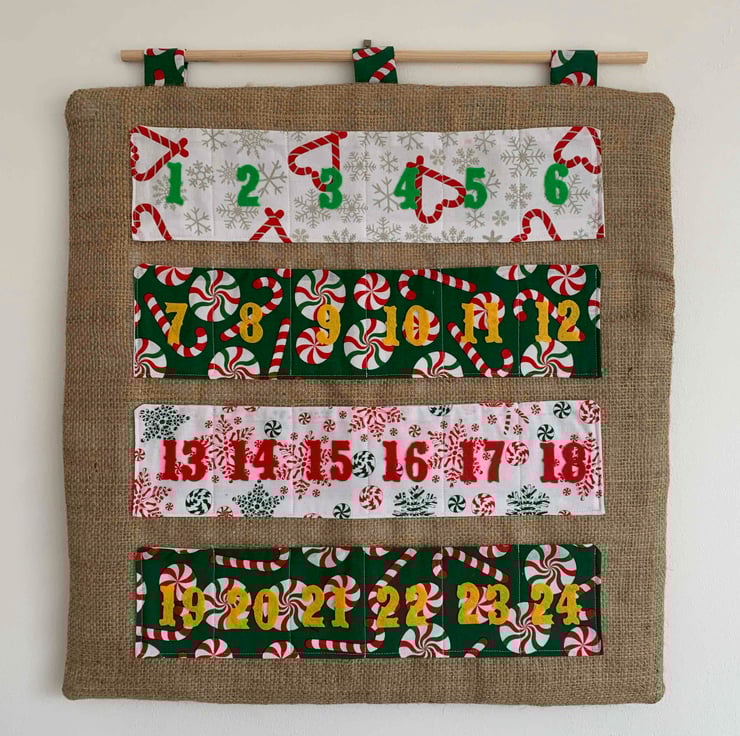 These Advent Calendars are made of a cotton fabric and hessian for achieving a rustic style. Each of them are supplied in a dowel to ensure a knit and tidy display.