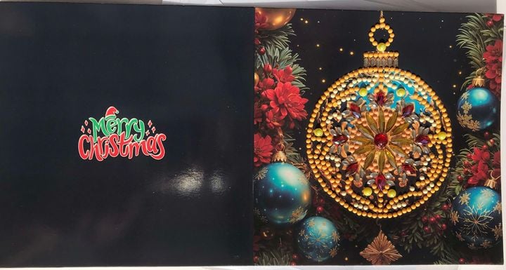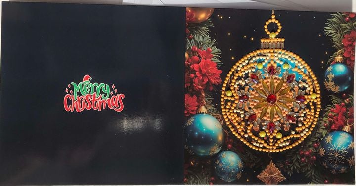 “Gems” have been placed manually one by one to create this amazing card for this Christmas Bauble decorations. Worked for up to an hour on this card, 8 colors.