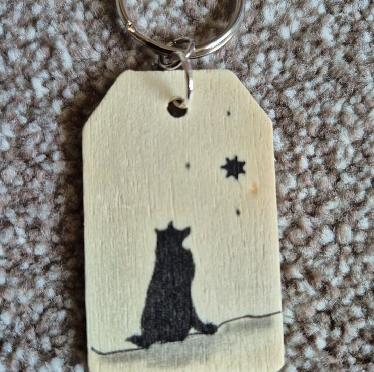 Each one has been hand drawn with and image of a dog looking at the might sky. So each one may be slightly different.