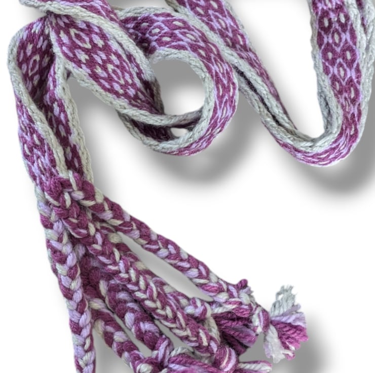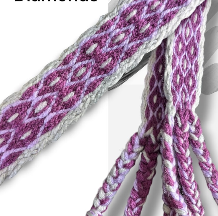 This item is for one handwoven belt the technique of tablet weaving. This is in a diamond pattern.