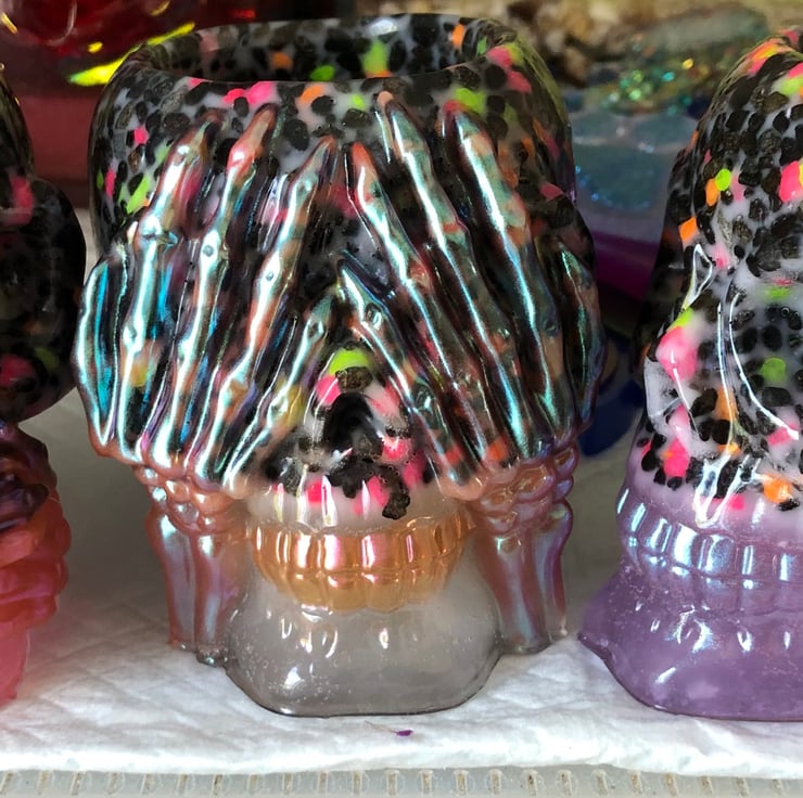 Looking to add some edgy decor with a twist of wisdom? Check out our Hear No Evil, See No Evil, Speak No Evil resin skull planters! Each skull embodies one of the classic poses, adding a unique and slightly mysterious vibe to any room. Perfect for succulents, air plants, or even as standalone decor.