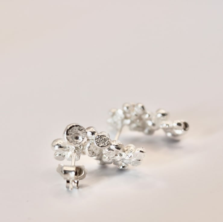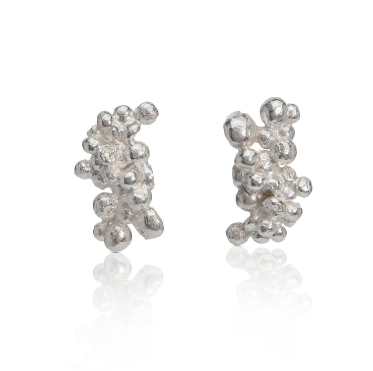 Stand out from the crowd with these sculptural recycled silver earrings made using the ancient technique of granulation: heating silver until it forms little balls, then carefully soldering them together.