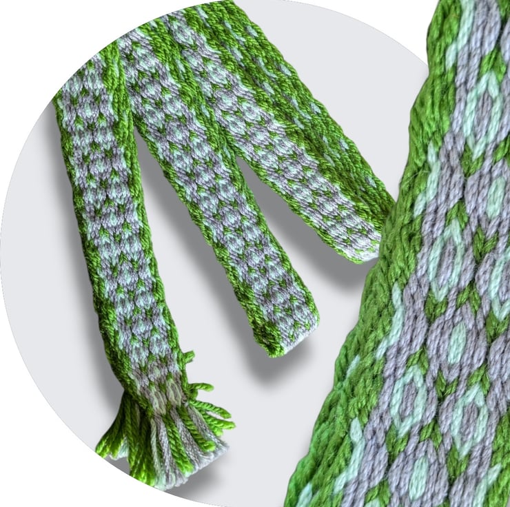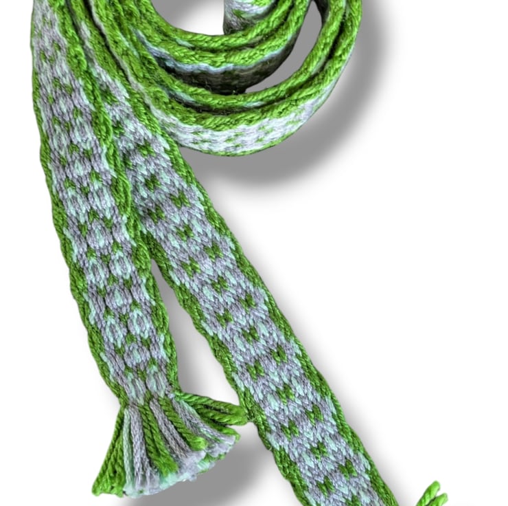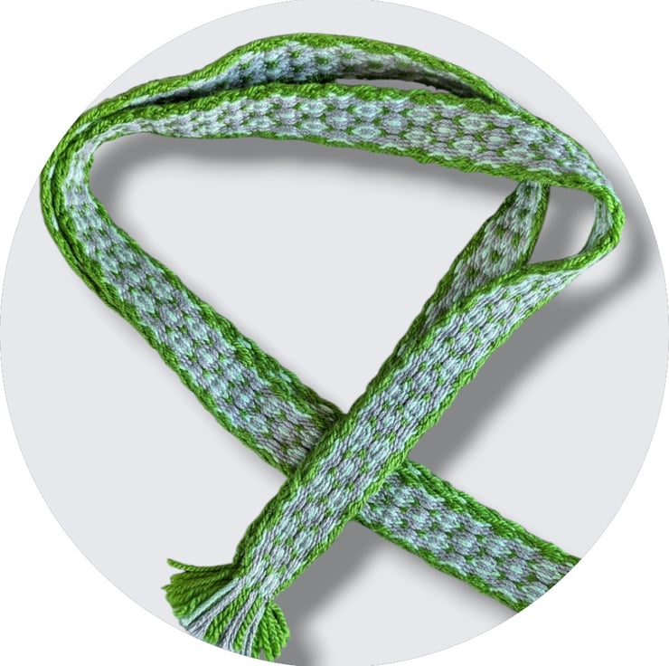 This item is for one handwoven belt the technique of tablet weaving. This is in a diamond pattern.