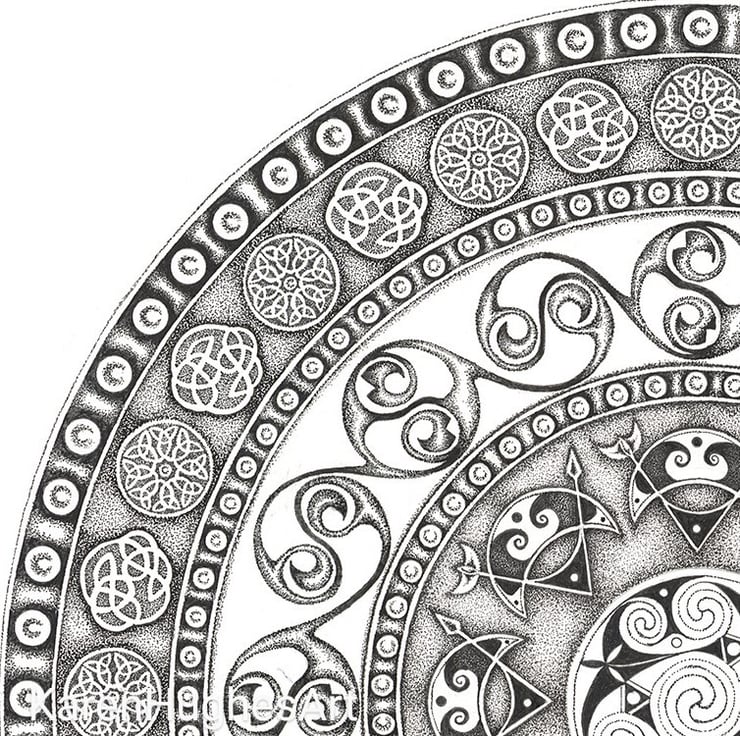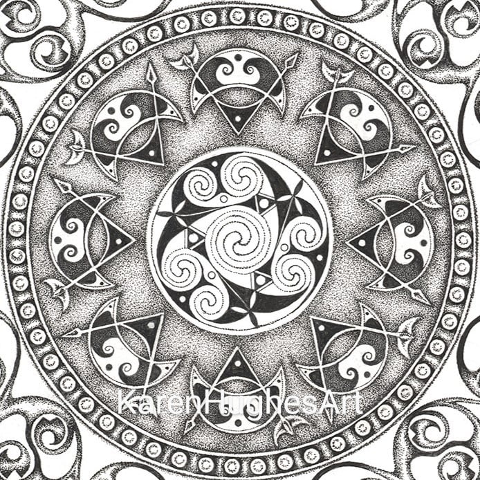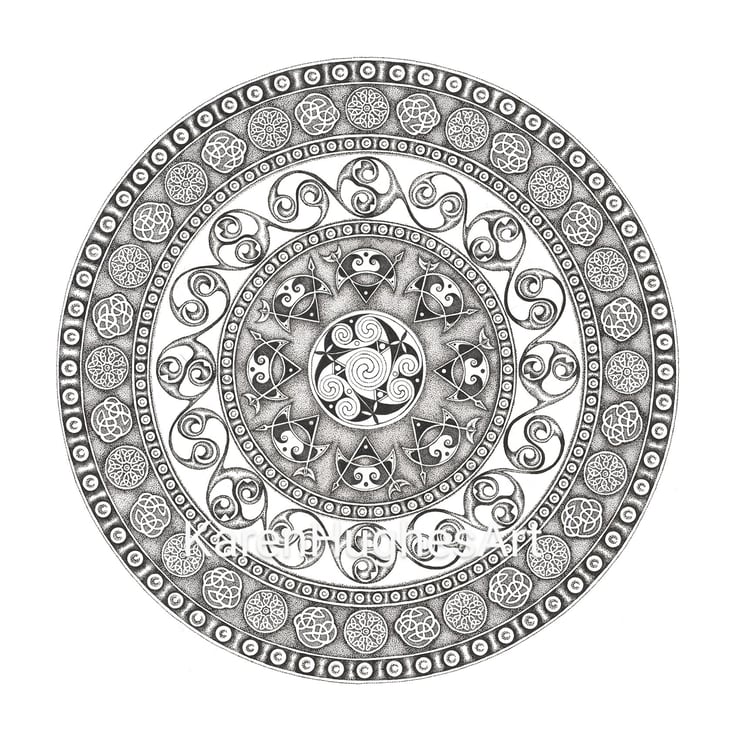 A black and white fine art print of my original pen drawing, La Tene Circle. Professionally printed on matt acid- free archival Hahnemuhle paper.
