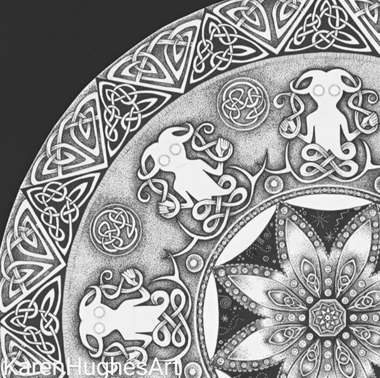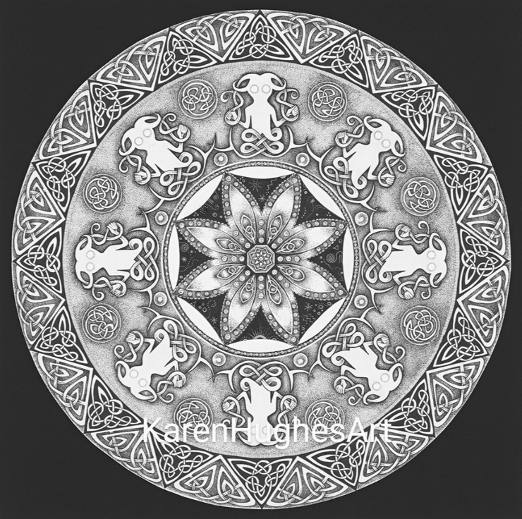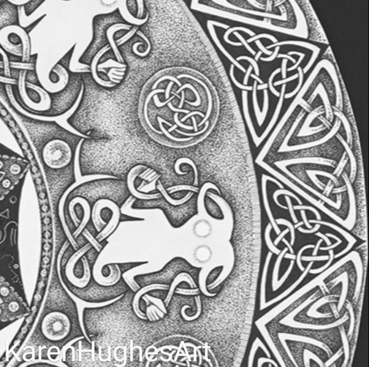 Inspired by the Pictish symbol stone, now on display in the Meigle Sculptured Stone Museum in the village of Meigle in eastern Scotland, and my own imagination.
