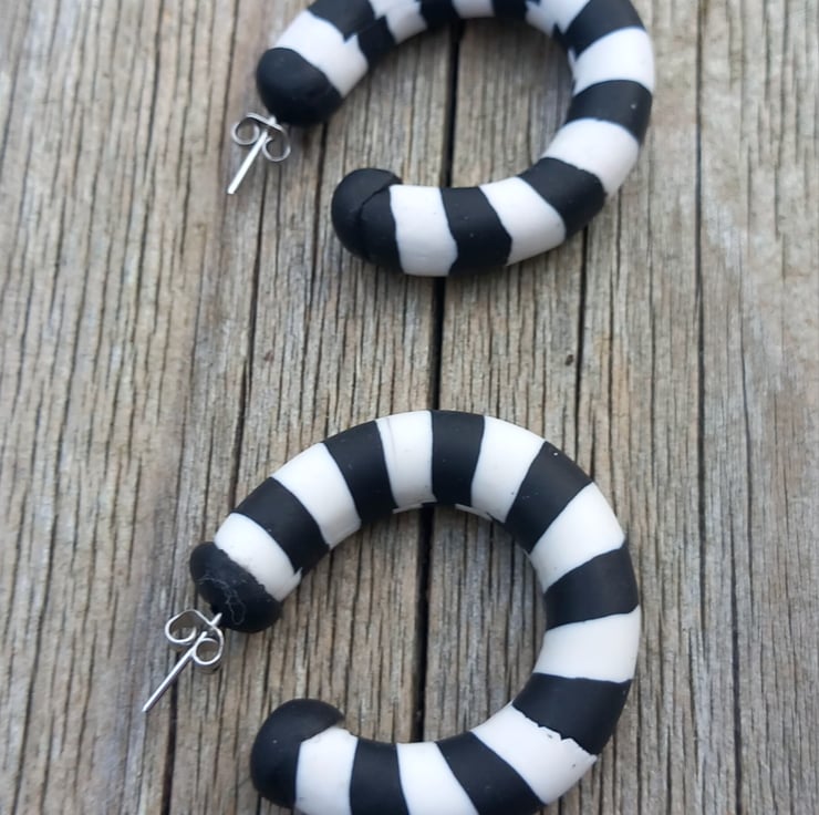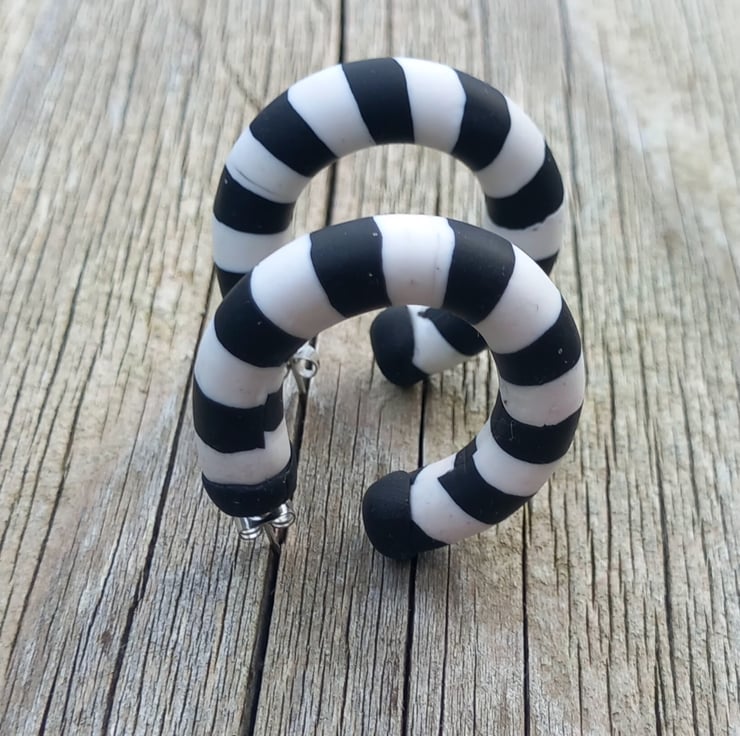 These are stripy black and white hoops in celebration of the new Beetlejuice movie, obviously the original is my favourite and Tim Burton will always be an inspiration in my work.