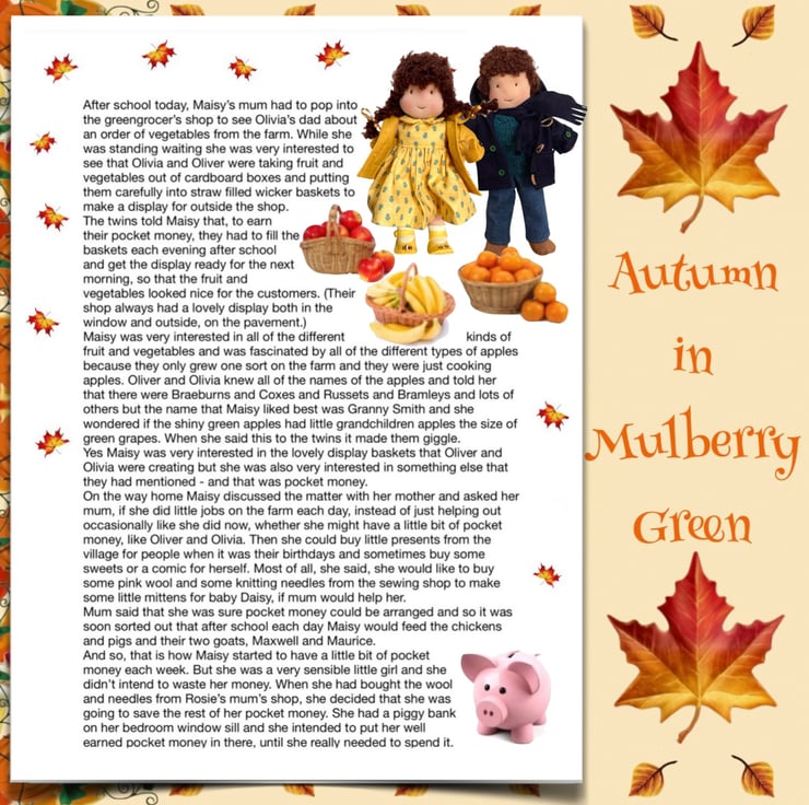 There are other children in Maisy’s class at school - Violet, Billy with his pet rabbit, Amber, Tilly, Rosie and her kittens, Amelia, Ruby, Marigold, Bobby with Max the dog, and the twins Oliver and Olivia, who have a puppy called Oscar. The dolls are all 26cm tall and baby Daisy is 16cm. Maisy and Mo love nothing more than having adventures with their friends. You can read about their adventures on my Facebook and Instagram pages - Maisy Muffin Rag Dolls and on my Mulberry Green Pinterest boards.