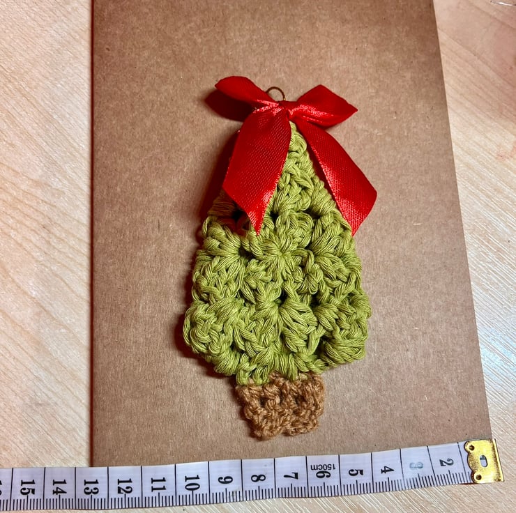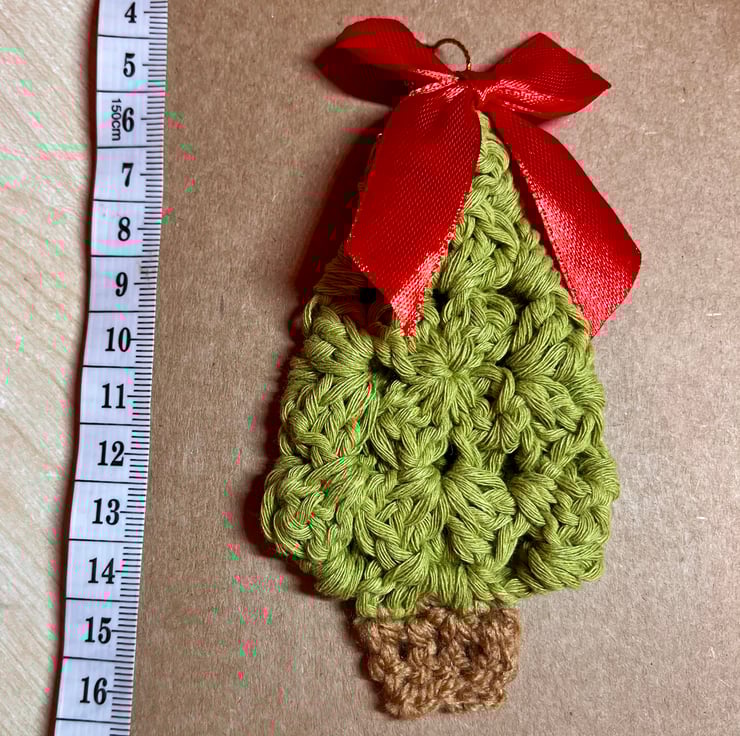 The detachable Granny Square Christmas Tree ornament keeps on giving year after year hanging from the Christmas Tree after your family or friends display it during the Christmas season.