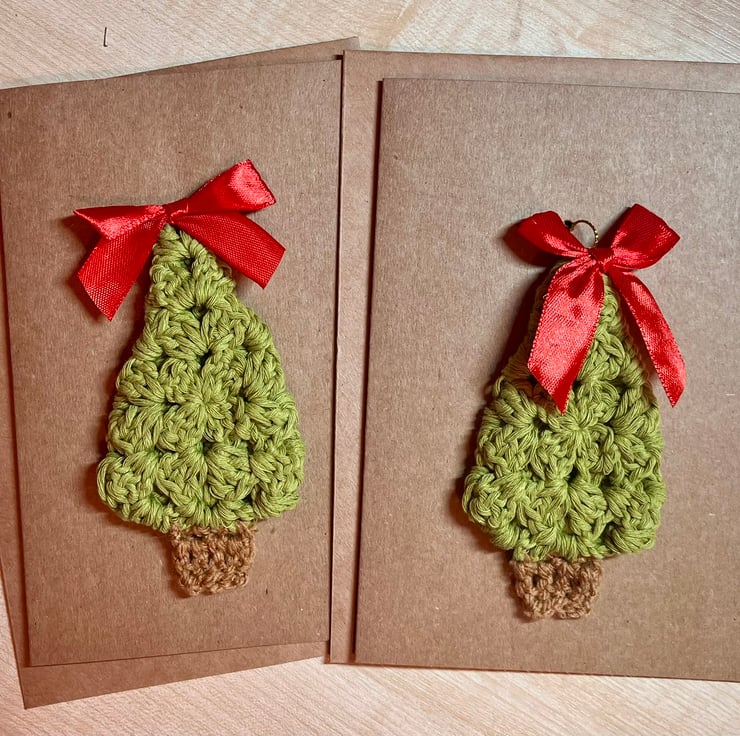 This set of two Christmas Cards are perfect two in one gift and card. . Crocheted with a cotton blend yarn gives a rustic & homey look.