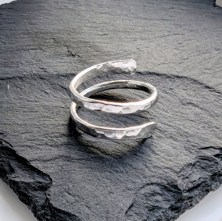 Recycled Sterling Silver Wrap Ring, Handmade Forged from Sterling Silver