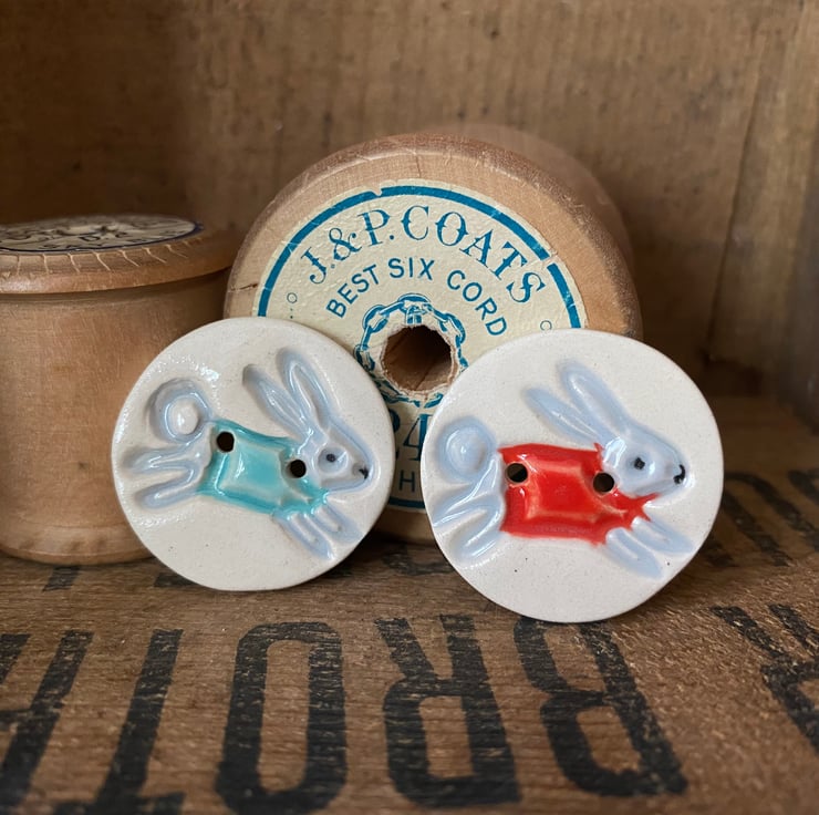 This set of two ceramic buttons are made from white earthenware clay, embossed and glazed on the front. They are then fired to 1100 degrees, so nice and strong. They measure 2.8cm diameter x 3mm thick. They can be handwashed or machine washed on a low temperature. Perfect for all sorts of arts and craft projects