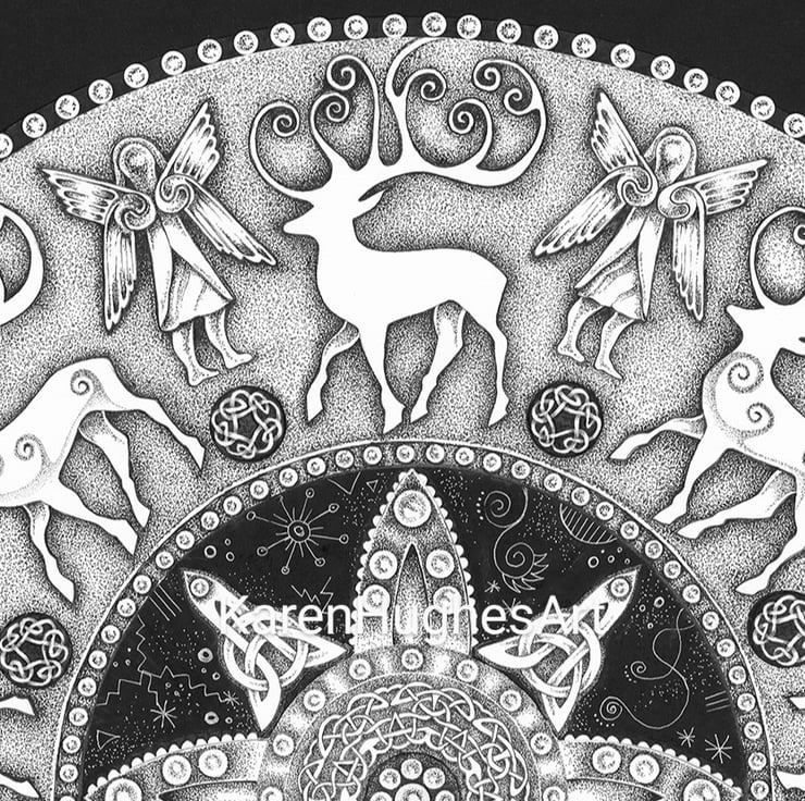 Inspired by the stag and angel stone carvings found on the Pictish cross-slab at Eassie in Angus, and my imagination.