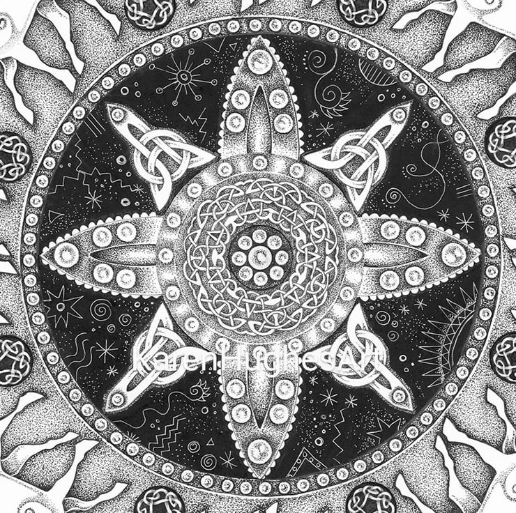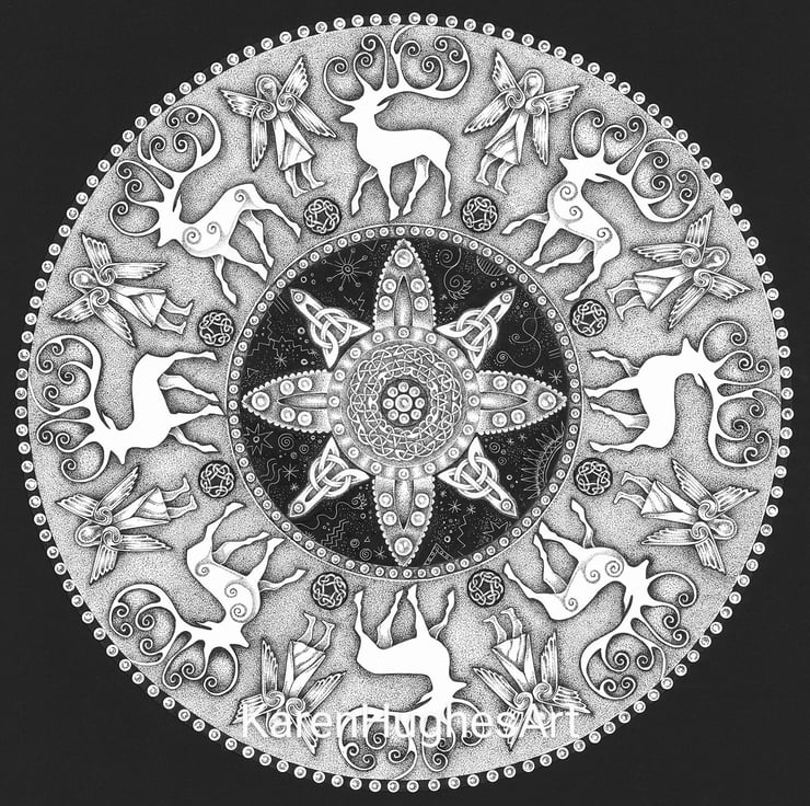A black and white fine art print of my original pen drawing, Stag Circle. Professionally printed on matt acid-free archival Hahnemuhle paper.
