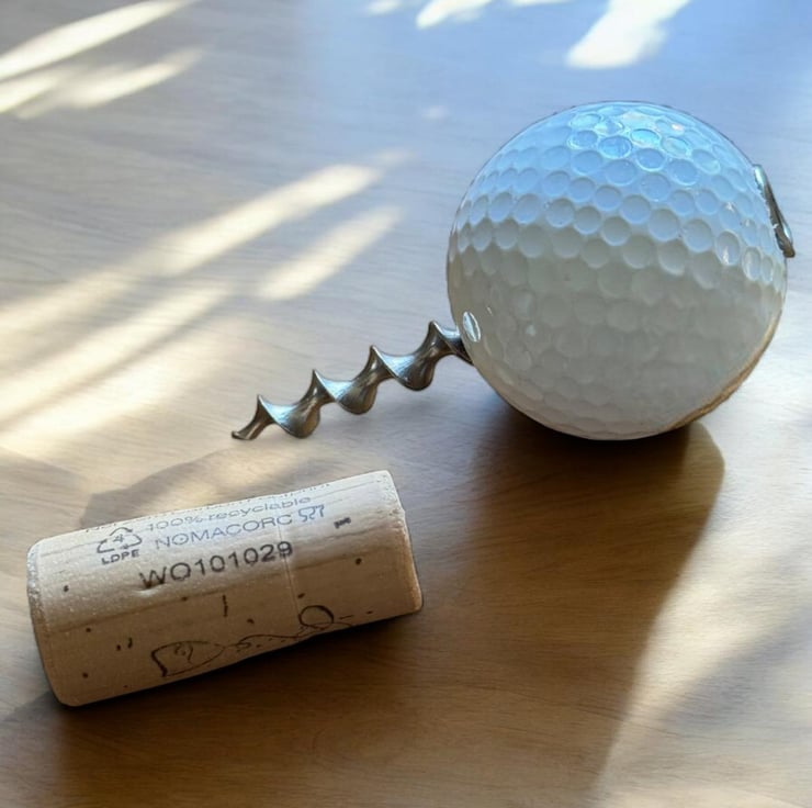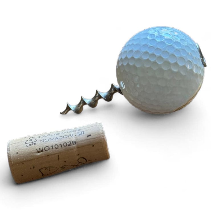 Unleash your love for Golf and wine with the reclaimed golf ball Wine Opener. Hand made in the UK, it features a golf ball and metal auger, perfect for opening your favorite bottles of wine. Just screw the bit into the cork and pull, making it easy to enjoy your favorite wines. Not suitable for synthetic corks, champagne or prosecco.