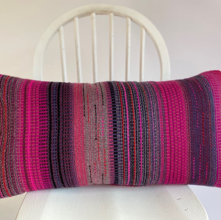 A contemporary and one-of-a-kind hand woven removable cushion cover.